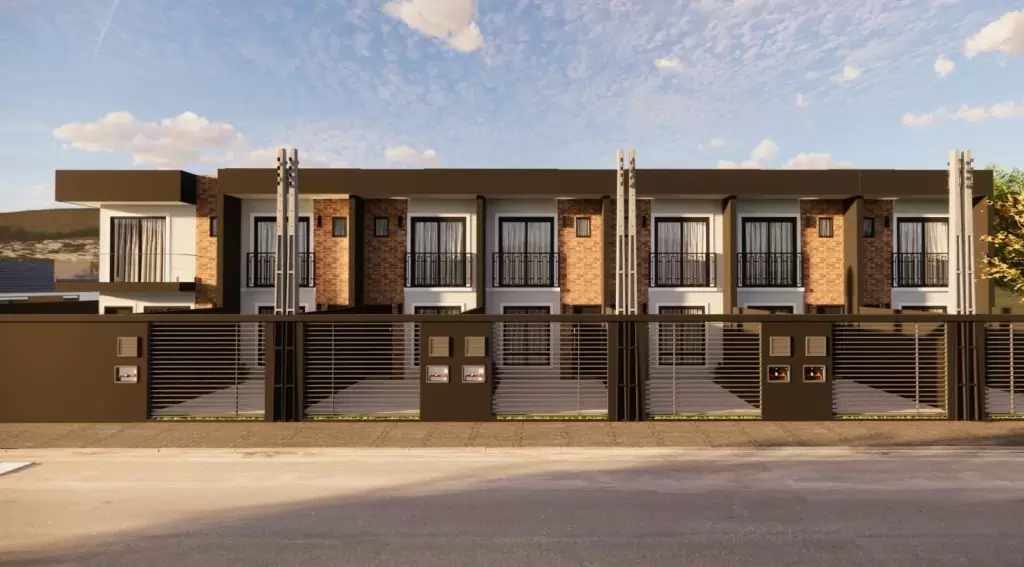Sobrado geminado de esquina – 03 dormitórios. 03 dormitórios, sendo 01 suíte com sacada e 02 quartos grandes, 01 banheiro social, Lavabo, Lavanderia separada, Sala de jantar e cozinha com duas portas janelas, Sala de estar ampla, com escada lateral, Ótimo espaço de terreno. Entrega em Dezembro/2025.