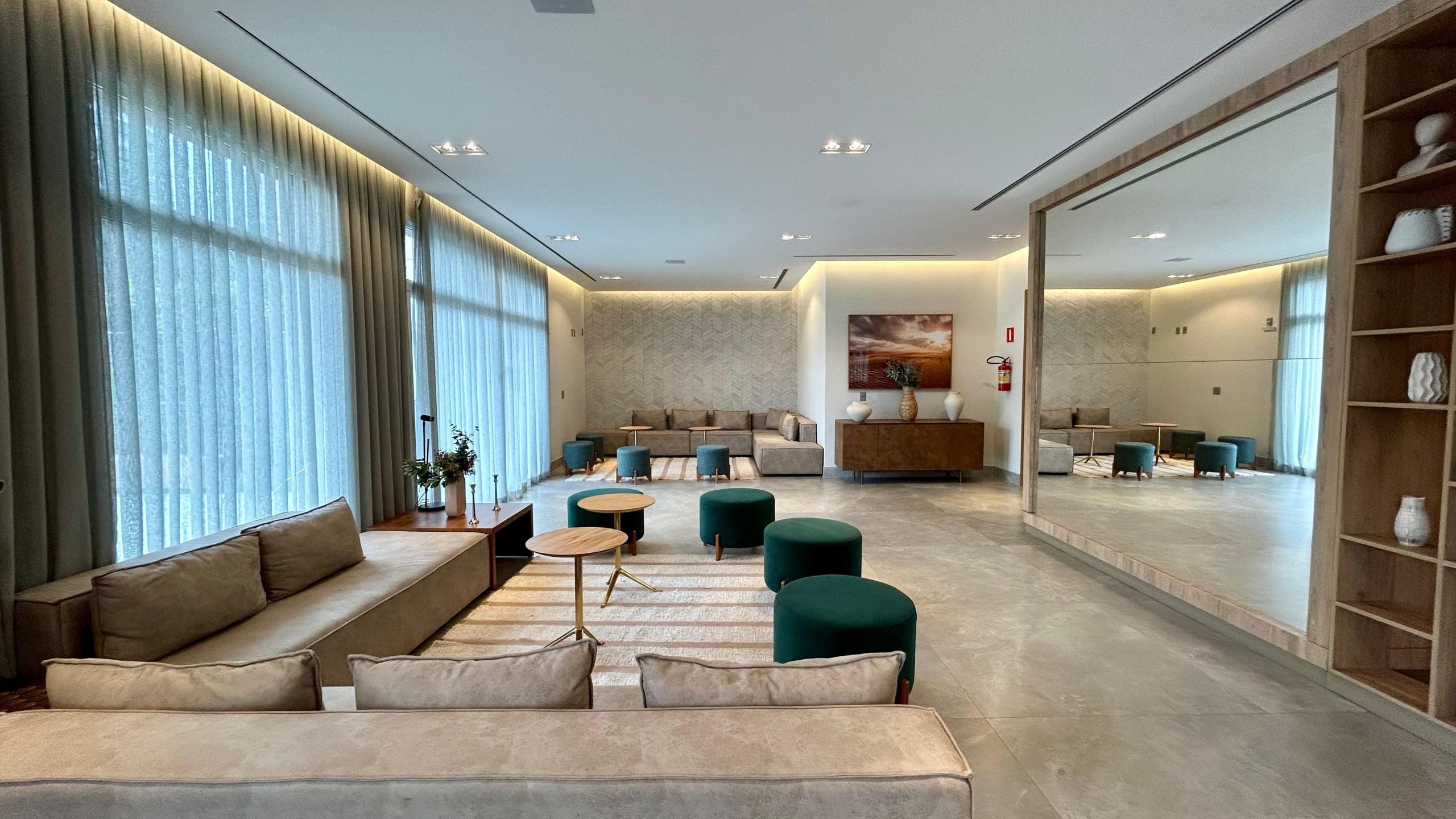 • Hall decorado e elevadores modernos