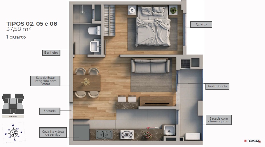 O projeto conta com uma torre única de 15 pavimentos e uma arquitetura urbana, elegante e atemporal, oferecendo uma diversidade de plantas que vão de studios a apartamentos de 3 quartos.