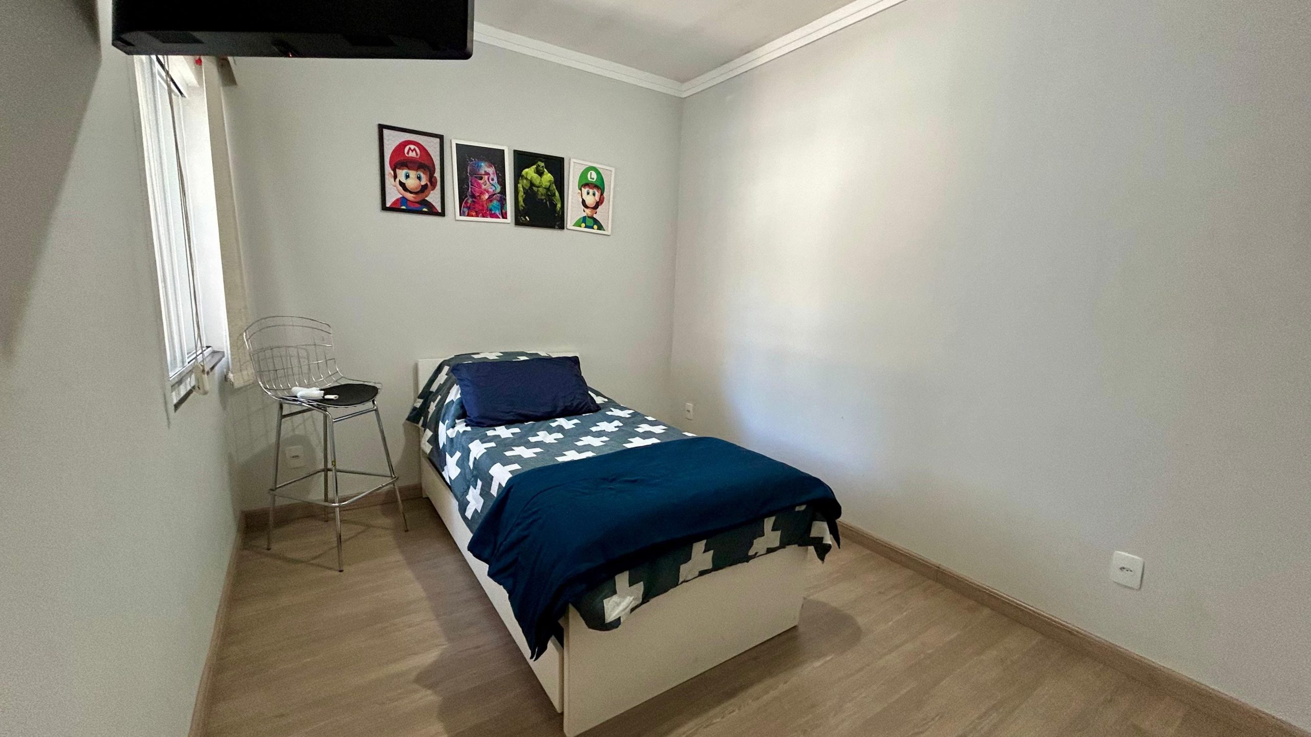 Permanecem no imóvel os móveis sob medida da sala, cozinha, banheiros e área gourmet.