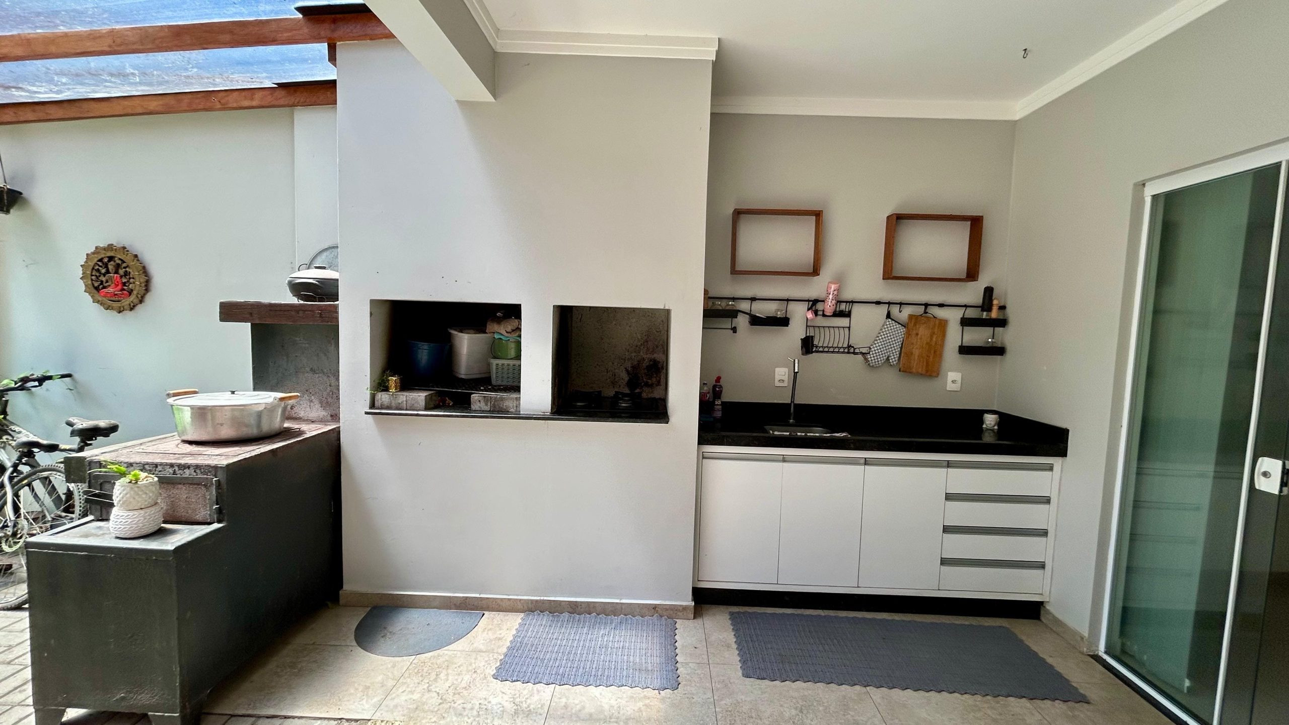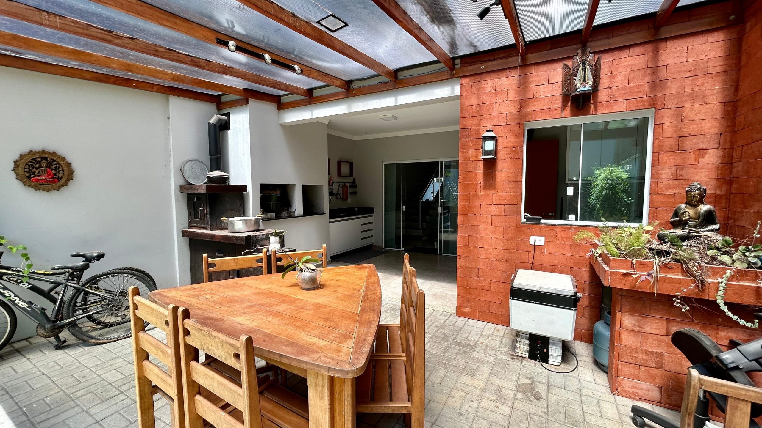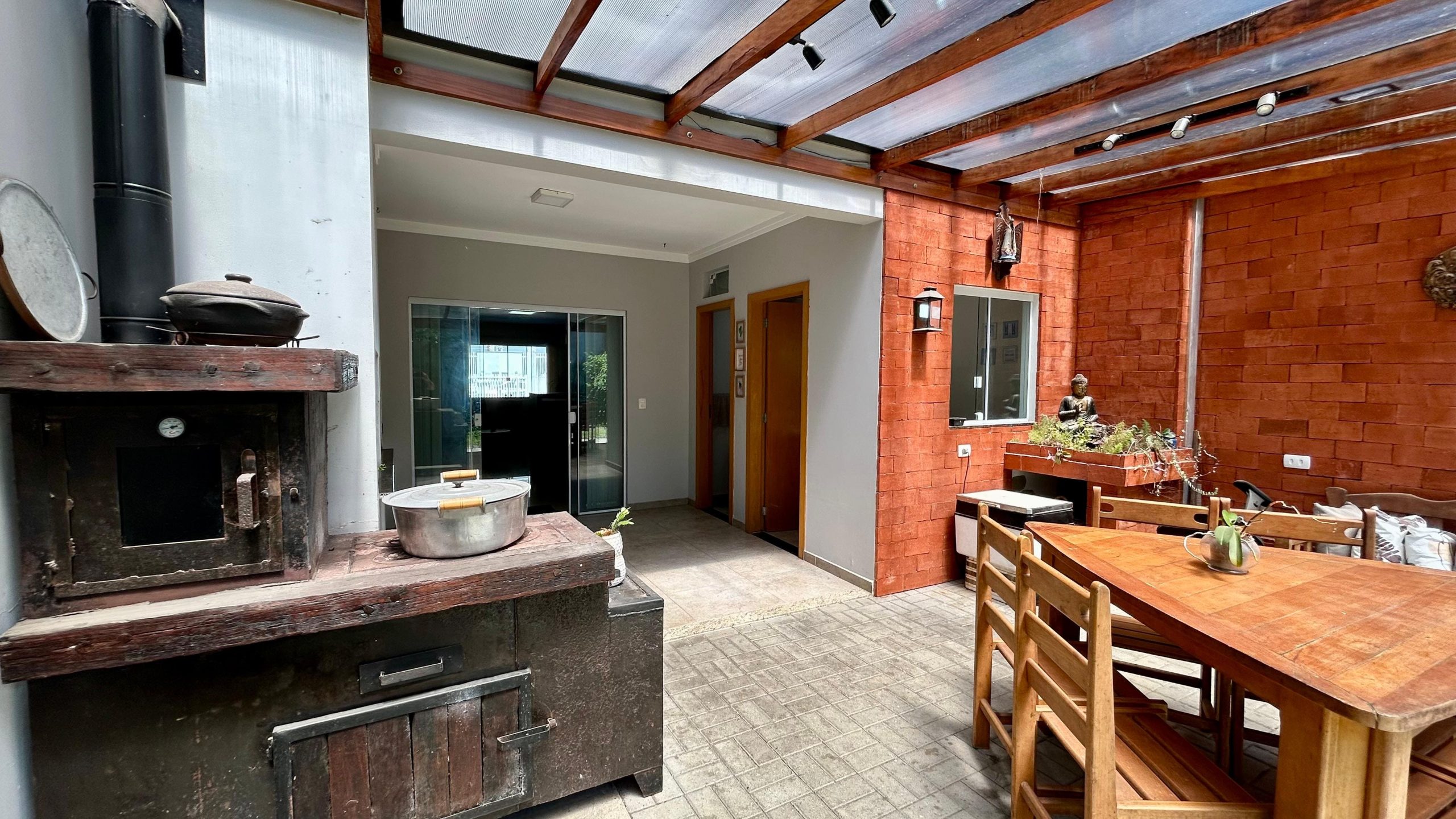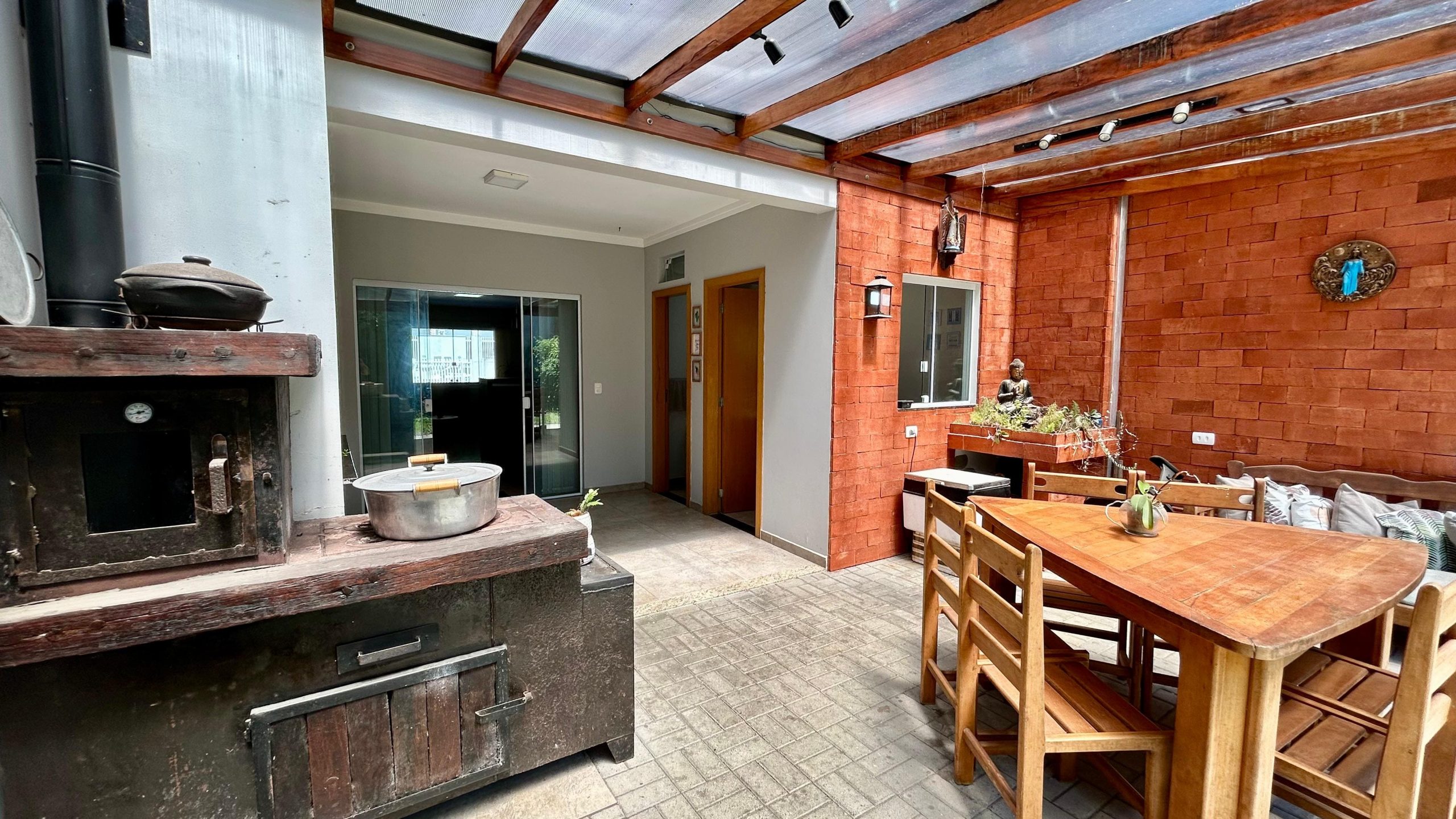 - Área gourmet com churrasqueira e fogão a lenha